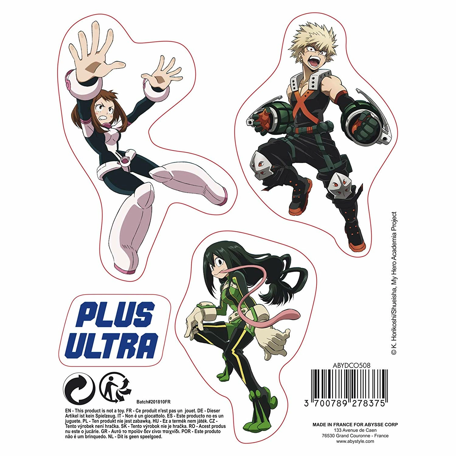 Vous rêvez de faire votre rentrée des classes à l'école des héros ? C'est bien dommage car elle n'existe pas encore... Néanmoins ! Vous pouvez déjà anticiper en affirmant votre appartenance avec ces magnifiques stickers My Hero Academia ! - Chaque pack est composé de 2 planches d'éléments prédécoupés qui trouveront leur place sur les murs, cahiers, PC portables, frigos… - Dimensions totales d’une planche : 16 cm x 11 cm. - Planche adhésive en vinyle transparent repositionnable 100µ.