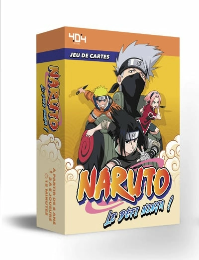 Deviens le meilleur ninja de Konoha !Débarrasse-toi vite de toutes tes cartes pour devenir le grand gagnant. C’est simple, tu peux poser une carte du même personnage ou de la même couleur.Mais attention, certaines cartes sont des cartes spéciales ! Maître Hokage, Orochimaru, Tsunade, Kakashi et même Kiba et son chien Akamaru peuvent reverser la partie avec leurs pouvoirs… Sois prudent et malin pour remporter la victoire ! Un jeu de 50 cartes.2 à 5 joueurs.A partir de 6 ans.Parties de 15 minutes.
