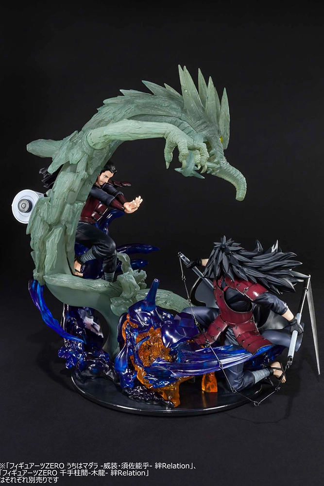 La gamme Kizuna Relation s'agrandit, après Naruto et Sasuké voici Madara Uchiwa VS Hashirama. La Figuarts Zero d'Hashirama en pleine action en train d'invoquer Mokuryu. Il est possible de la combiner avec la Figuarts Zero de Madara (vendue séparément) et de former un diorama épique.