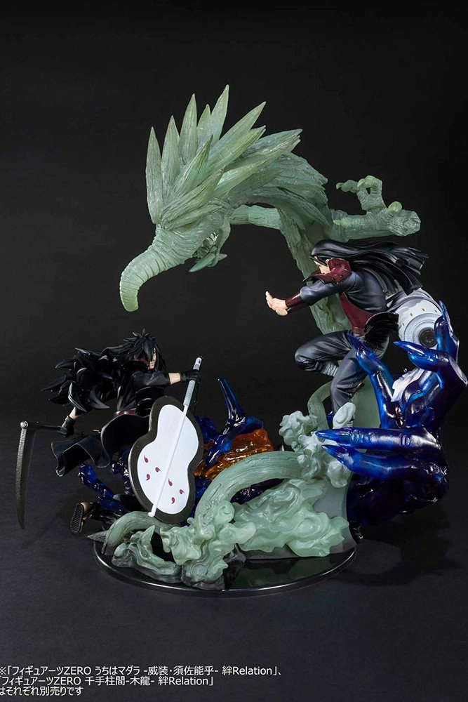 La gamme Kizuna Relation s'agrandit, après Naruto et Sasuké voici Madara Uchiwa VS Hashirama. La Figuarts Zero de Madara en pleine action en train d'invoquer Susanoo. Il est possible de la combiner avec la Figuarts Zero d'Hashirama (vendue séparément) et de former un diorama épique.