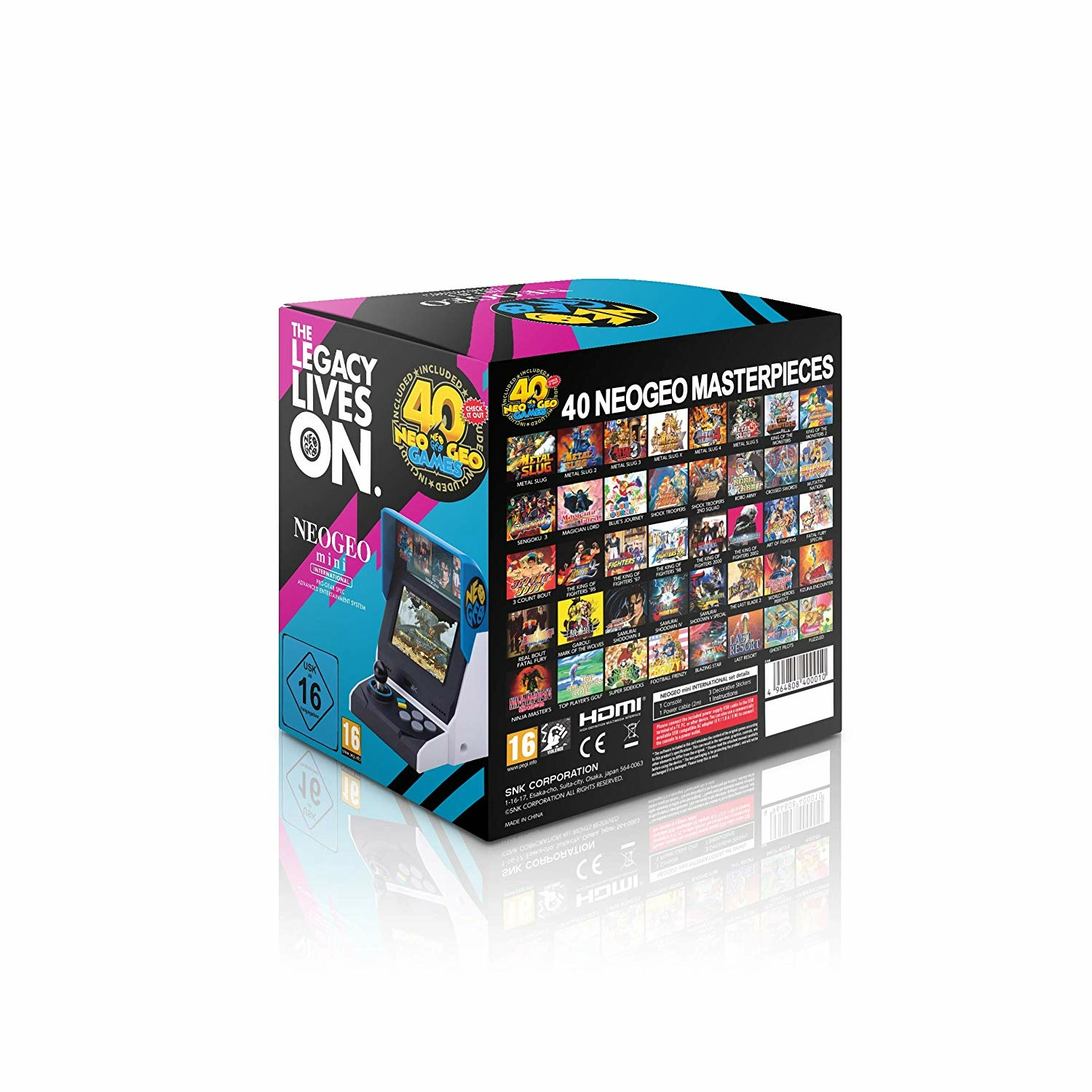 La NeoGeo Mini est de retour pour les 40 ans de SNK !40 jeux du combat en VS avec King of Fighters en passant par du shooter plateformer avec Metal SlugAvec son écran intégré de 3.5 pouces, emmenez-la partout pour des parties endiabléesJouez sur votre télévision grâce à la sortie HDMI prévueSortie Casque et Haut-parleurs AuxiliairesCâbles mini-HDMI/HDMI, manettes et accessoires non fournisLa boite contient :La console Neo Geo Mini et ses 40 jeuxUn câble d'alimentation USB (1,5m)x2 Stickers Personnages SNKx1 Sticker Logo NEO·GEO
