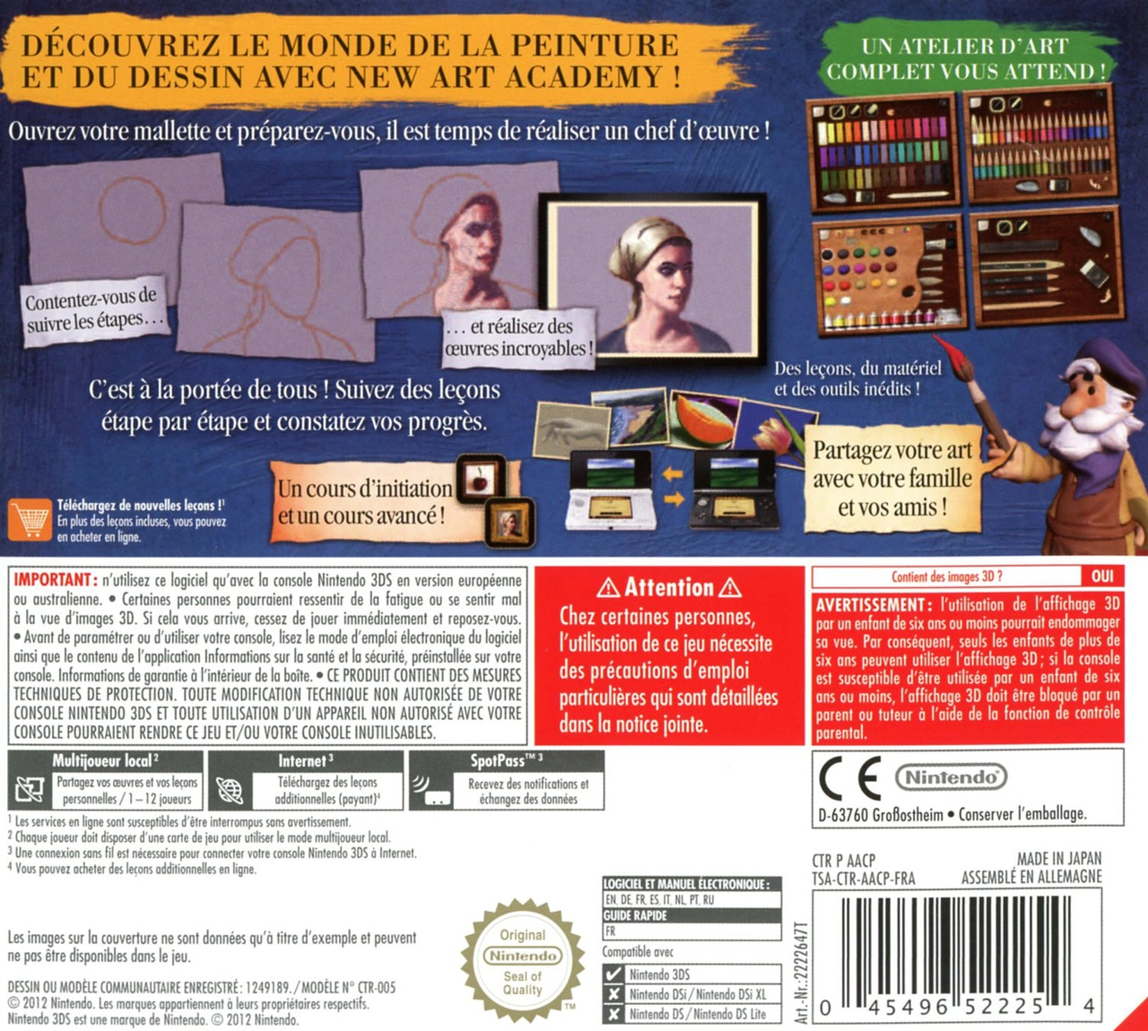 New Art Academy est un logiciel de dessin sur 3DS. Ce titre propose une vingtaine de leçons vous permettant de découvrir les fondamentaux du dessin et de la peinture.
