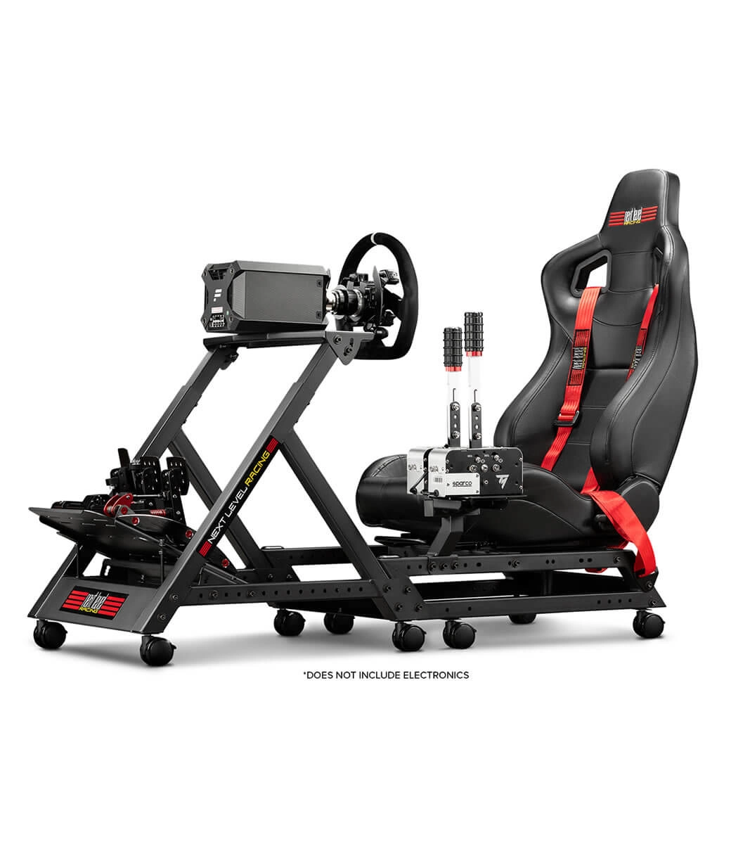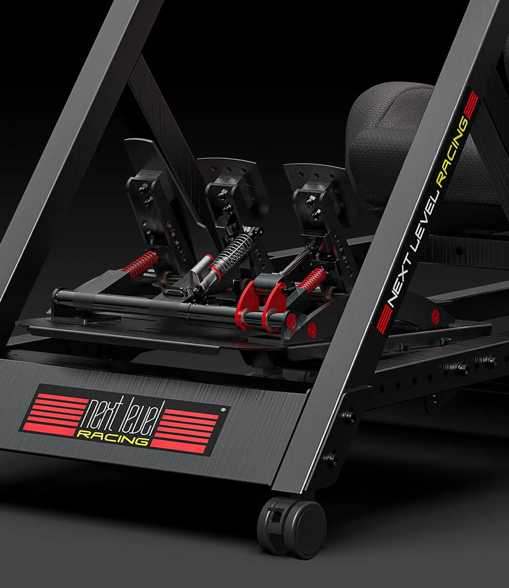 The patented GTtrack has all the features included for serious sim racing such as 4 point racing harness, gear shifter and handbrake adaptor, Buttkicker® Gamer 2 adaptor, height adjustable rubber feet for the cockpit and the new Next Level Racing® Lockable Wheel Castors allowing you to move your cockpit around with ease and lock the wheels for serious racing.