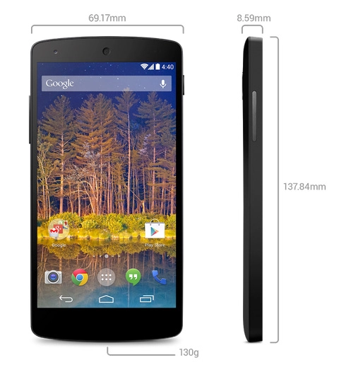 Le Nexus 5 est un appareil haute précision conçu avec des matériaux solides et doté d'un design épuré pour mettre en valeur l'essentiel. Avec un poids plume de 136 g et seulement 8,59 mm d'épaisseur, c'est le téléphone Nexus le plus puissant à ce jour.