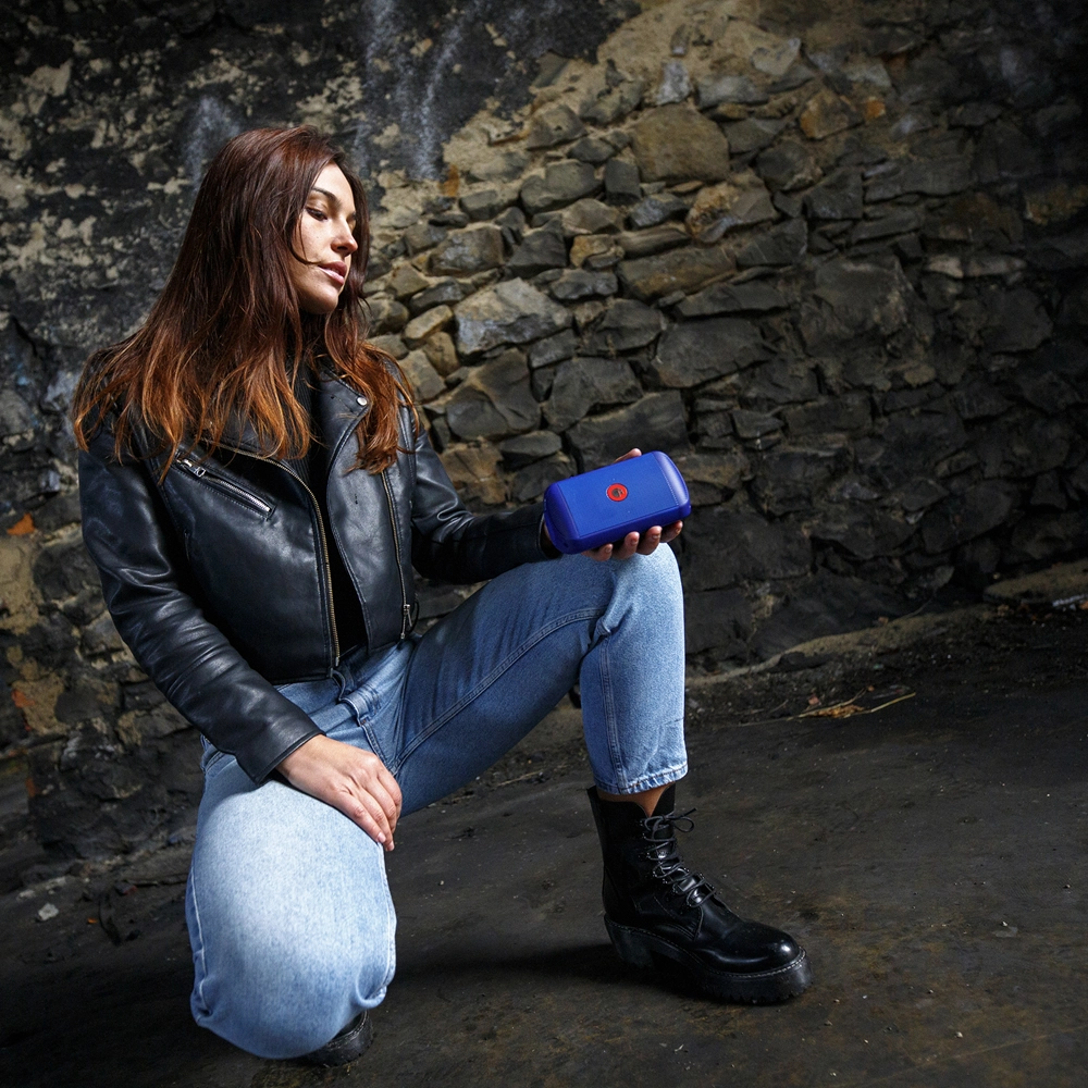 Haut-parleur Bleu ultraportable et compact de 10 W de puissance de crête, parfait pour les voyages et l'utilisation en extérieur.