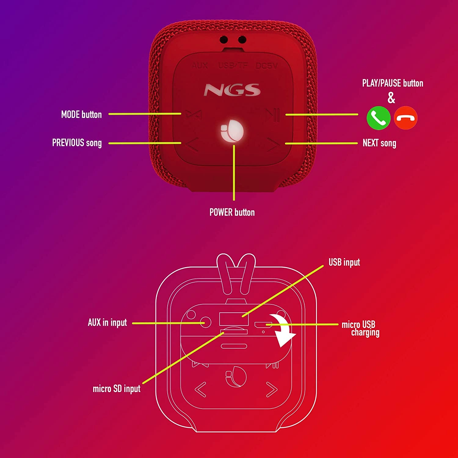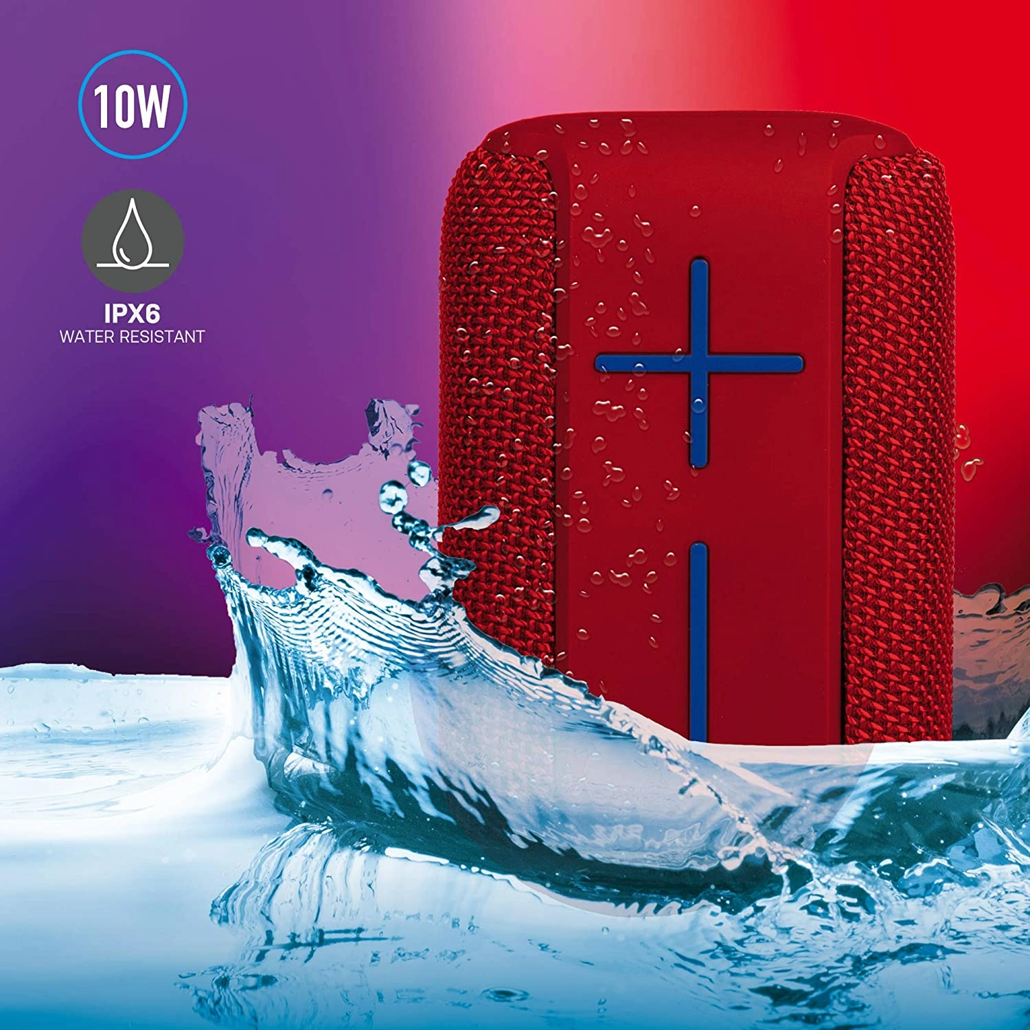 - L'enceinte bénéficie d'une protection IPX6 qui signifie que la NGS Roller Coaster est très résistante et qu'elle peut résister à des jets d'eau intensifs haute pression pendant 3 minutes