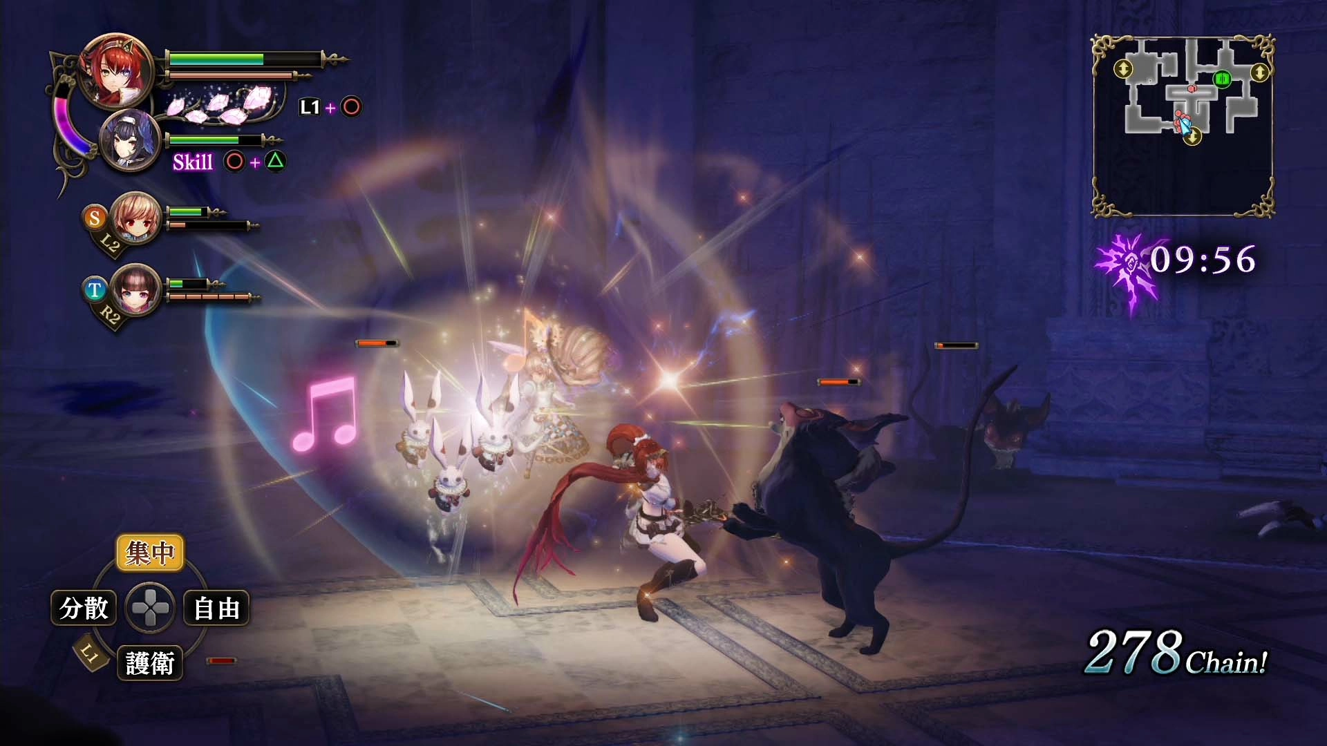 Le jeu est un JRPG assez classique où les combattantes peuvent recruter des monstres pour les aider en combat.