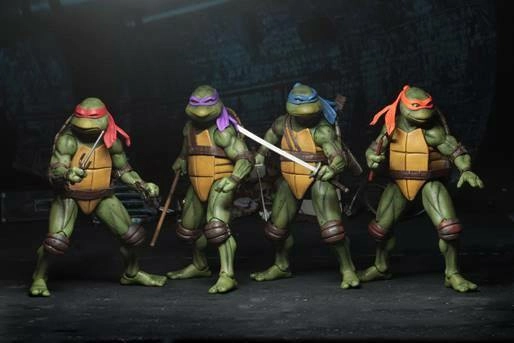 Extrait du film Teenage Mutant Ninja Turtles de 1990! Après avoir été plongés dans une flaque de déchets radioactifs, quatre reptiles radicaux ont été transformés en le plus grand quatuor de lutte contre la criminalité de la ville de New York! Ces figurines à l’échelle de 15 cm sont très articulées, très détaillées et parfaitement fidèles au film. Chacun vient avec une arme de signature et d'autres accessoires, y compris (bien sûr) une part de pizza. Emballage de boîte à fenêtre.