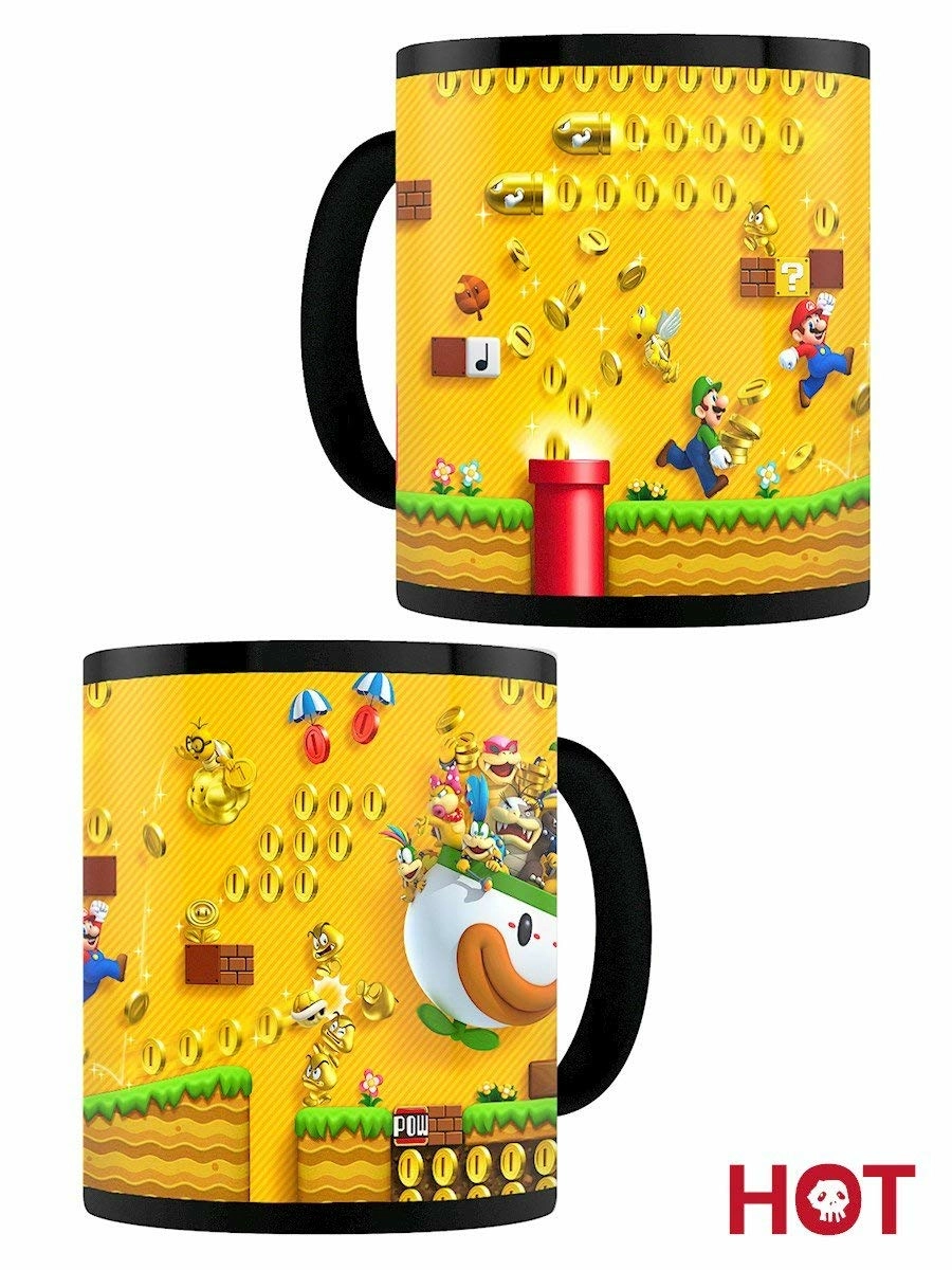 Mug effet thermiqueNintendo, modèle Super Mario Bros Gold Coin Rush.Mug (grande tasse) en céramique au décor imprimé haute qualité.Le décor se modifie quand le mug est rempli d'un liquide chaud.Ne pas mettre au lave-vaisselle.Contenance 315 ml.