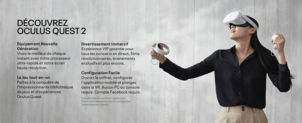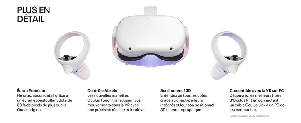 Oculus Quest 2 est notre système de VR tout-en-un le plus abouti. Chaque détail a été conçu pour retranscrire au mieux vos mouvements dans l’univers virtuel.