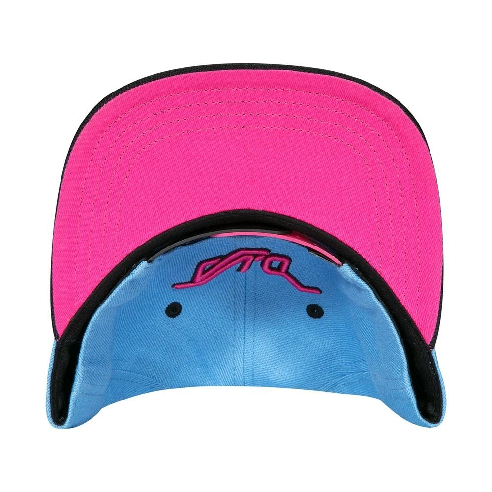 Officially licensed by Overwatch; designed and created by J!NXBlue cap with contrasting black and pink brimD.Va bunny embroidered on front, patches on both sides, and D.Va logo embroidered on back100% polyester twill constructionAdjustable snapback fit