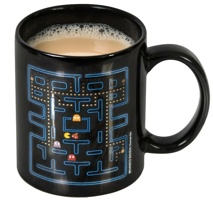 On pense à vous en dénichant ce Mug PAC MAN qui réagit à la chaleur. Qui ne se souvient pas du générique, des fantômes et des pac-gommes à manger ? Sur ce Mug vous retrouverez une reproduction d'une scène du jeu vidéo PAC MAN qui réagit à la chaleur de votre boisson. Le labyrinthe se rempli de fantômes et PAC MAN apparaît grâce à la chaleur. Etonnant et tellement amusant.