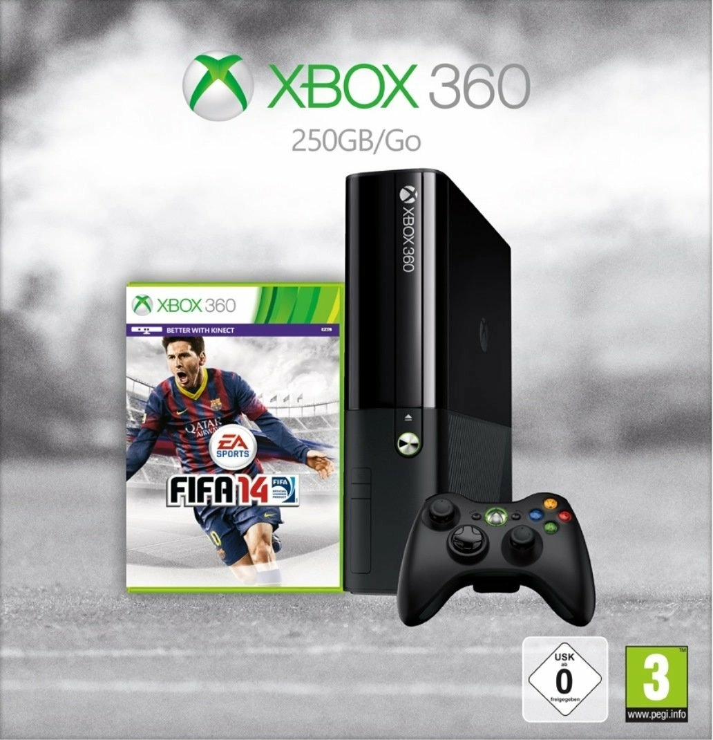 Ce pack comprend la console Xbox 360 et sa manette, équipée d'un disque dur de 250 Go et du jeu Fifa 14.