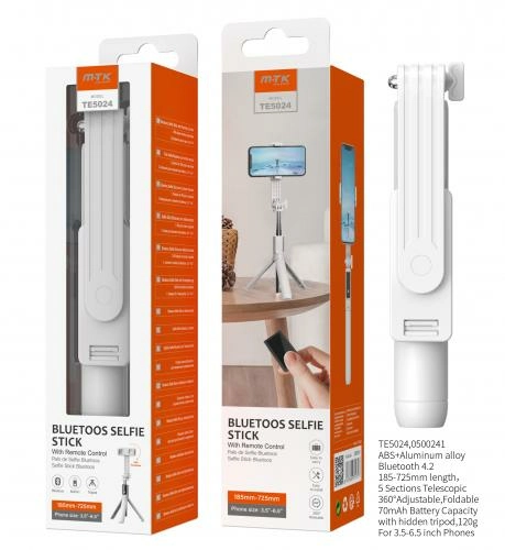 Découvrez Perche selfie- bluetooth avec télécommande- 18,5cm à 72,5cm- te5024-blanc sur Référence Gaming.