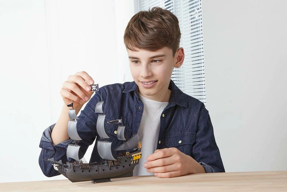 Échelle : 1:150Âge : 10+Nombre de pièces : 112Longueur : 260 mmHauteur : 235 mmMaquette du légendaire bateau pirate Black Pearl, le bateau du capitaine Jack Sparrow de la série de films Pirates des Caraïbes. Dans la cinquième partie, Jack affronte le redoutable capitaine Salazar, qui veut tuer tous les pirates en haute mer. Le kit modèle Black Pearl apporte le film dans votre salon d'une manière spéciale.- Terrasses avec structure en bois- Voile structurée- ancres- bateau à rames- fusils- haubans- figure de proue- Imposte décorée- plaque signalétique- présentoir Le système innovant easy-click garantit un succès rapide avec ce modèle : Des composants multicolores, fabriqués avec précision, sont assemblés entre eux et décorés d'autocollants en les bouchant simplement les uns aux autres.