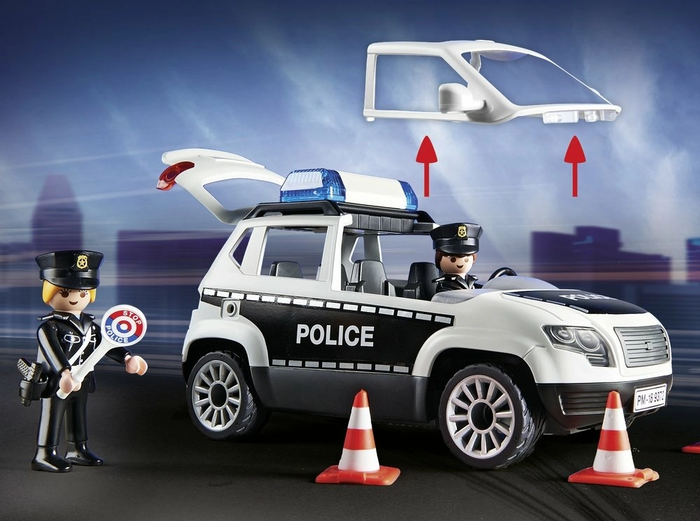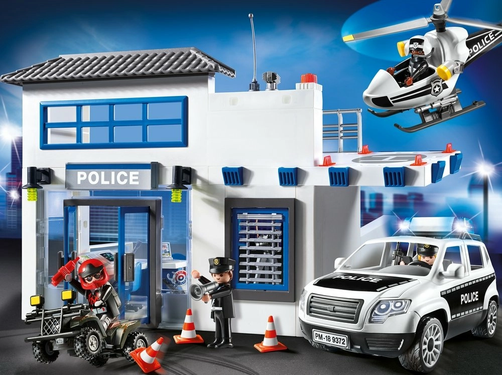 Contient 1 commissariat, 4 personnages, 1 voiture, 1 hélicoptère monoplace, 1 quad et de nombreux accessoires.