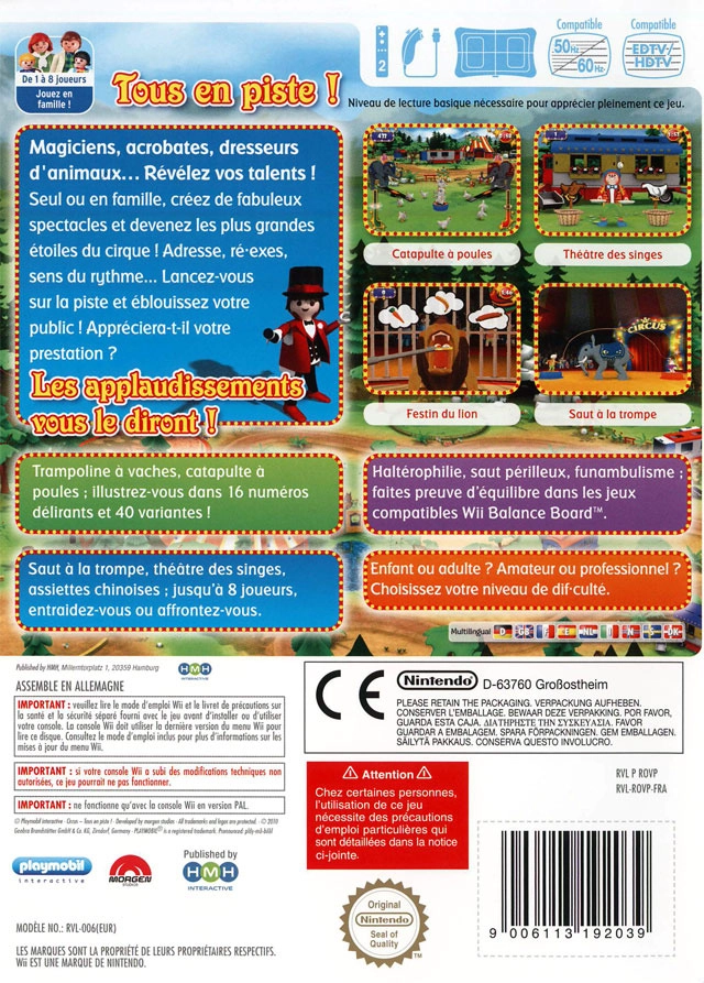 Disponible sur Wii, Playmobil Circus : Tous en Piste est une simulation dans laquelle vous gérez votre propre cirque. Découvrez avec enthousiasme la troupe des Playmobil et créez votre propre programme. Vous devrez vous entraîner pour ne pas rater le numéro devant le public. Clowns, jongleurs, magiciens et animaux, tous en piste pour le spectacle.