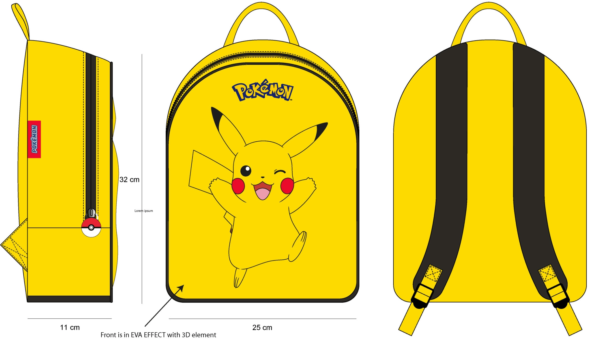 Pokemon - pikachu - sac à dos 3d '26x32x11cm'
