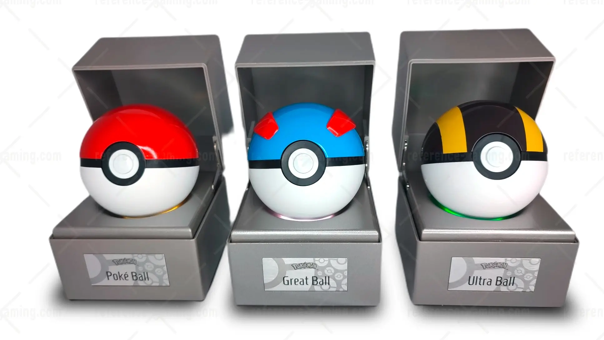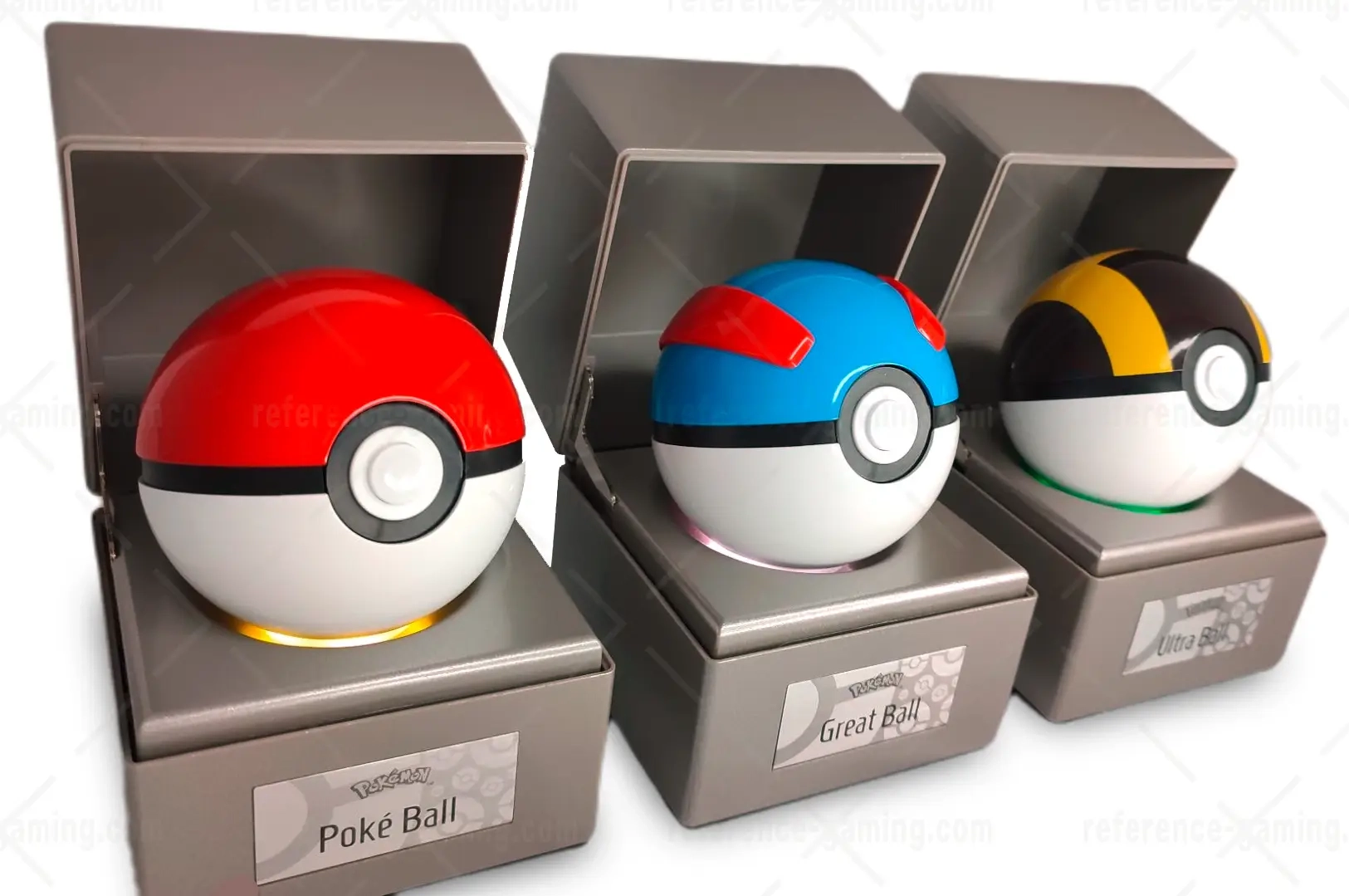 - Présentation premium : l’ouverture du boîtier de présentation soulève la Poké Ball pour la présentation.