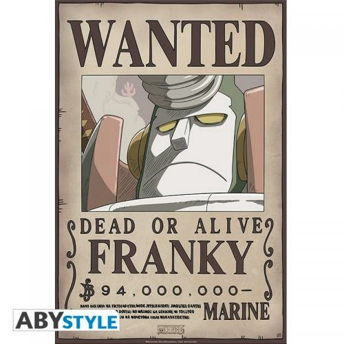 Retrouvez Franky en version New World sur ce poster One Piece Wanted avec une prime à 94 000 000 de berries.- Excellent grammage : 170 g/m² et pelliculage brillant. Impression haute qualité en offset.- Les posters mesurent 52 x 38 cm, en format portrait ou paysage selon les modèles.