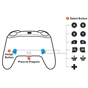 Gagnez un avantage compétitif dans votre jeu préféré en mappant des actions supplémentaires sur 2 boutons à l’arrière de la manette. Aucune interaction entre l'application et le tableau de bord n'est requise. Appuyez sur le bouton de programmation pendant 2 secondes (1) suivi du bouton que vous souhaitez mapper (2), puis sélectionnez AGR ou AGL (3) pour terminer le processus de mappage rapide des boutons.