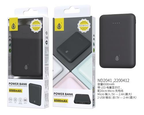 Power bank 6500mah - 2 usb + 1 microusb + led - nd2041 - noir