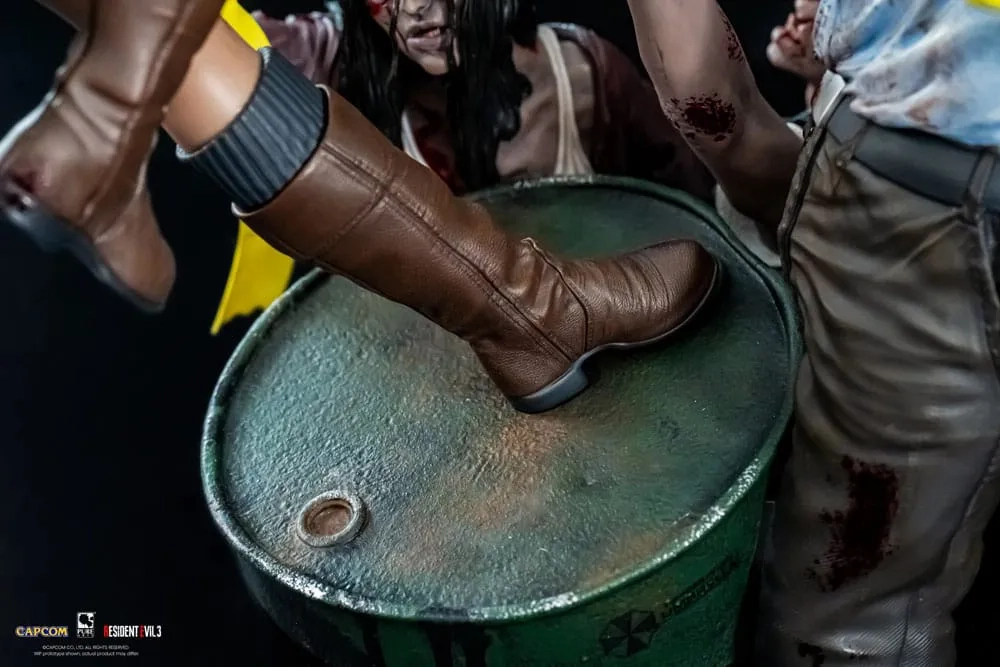 Meticuleusement détaillée, cette représentation saisit le courage et la détermination de Jill combattant les zombies dans l'univers apocalyptique de Resident Evil 3.