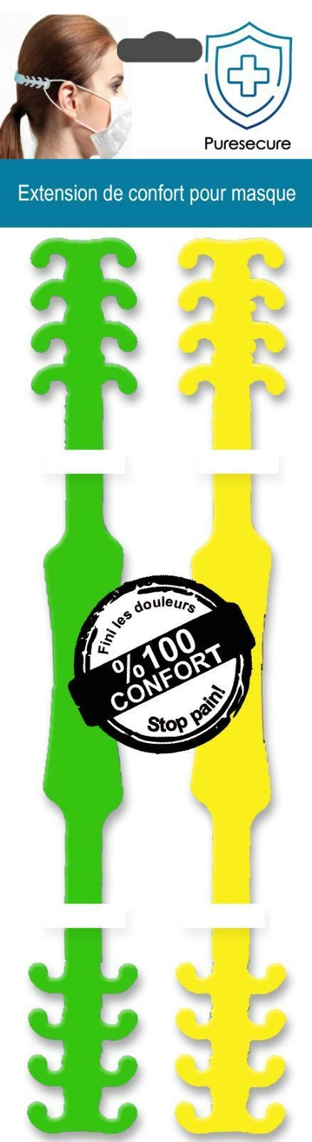 Puresecure - extension de confort pour masques (x2) vert + jaune