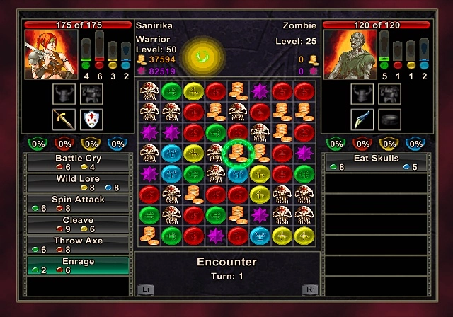 De cette décision dépendra votre style de jeu. Progressez dans un royaume où les affrontements se résolvent sous forme de puzzle-game, qu'il vous faut remporter si vous voulez améliorer les caractéristiques de votre héros.