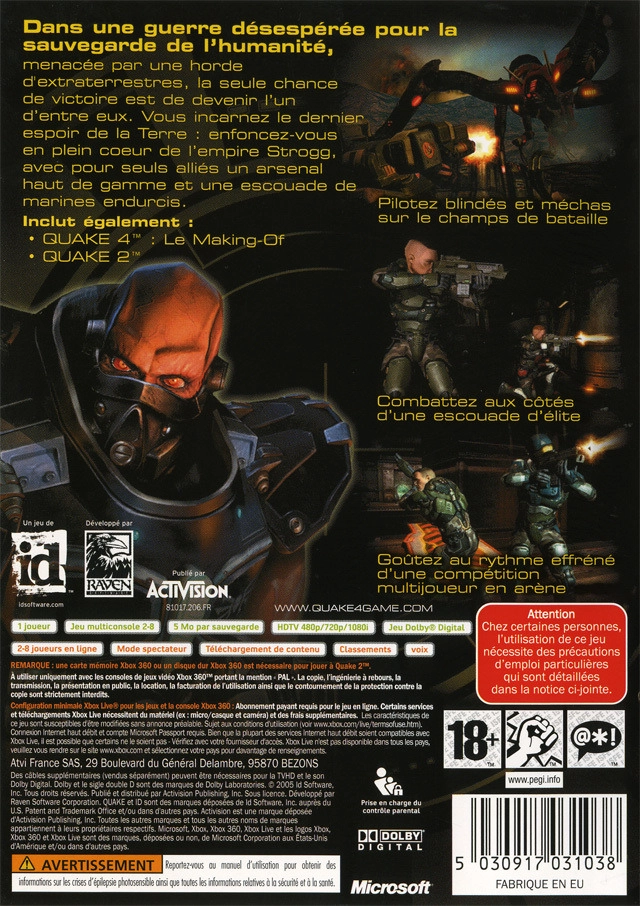 Quake 4 sur Xbox 360 est un jeu de tir en vue subjective qui vous plonge en plein conflit strogg sur la planète Stroggos.