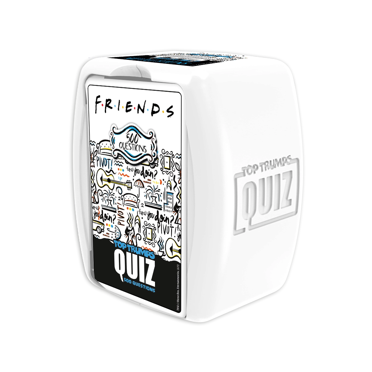 Jouez en famille ou entre amis avec 500 questions-réponses sur l'univers de Friends. Un format compact que vous pouvez emporter partout ! Ce quiz se joue en deux temps. Sois très attentif aux réponses de la première manche pour tenter de remporter la deuxième et peut-être renverser la partie !