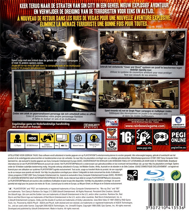 Rainbow Six Vegas 2 sur PS3 est un FPS tactique dans lequel vous incarnez Bishop, chef d'une escouade Rainbow. L'action se déroule dans la ville du vice, Las Vegas, vous êtes lancé à la poursuite de terroristes mais aussi de la vérité, suite aux événements du premier opus. Pour régler la situation le plus efficacement possible, vous disposez d'un panel d'armes et de tenues varié. Mettez fin à la crise de Vegas... Définitivement.