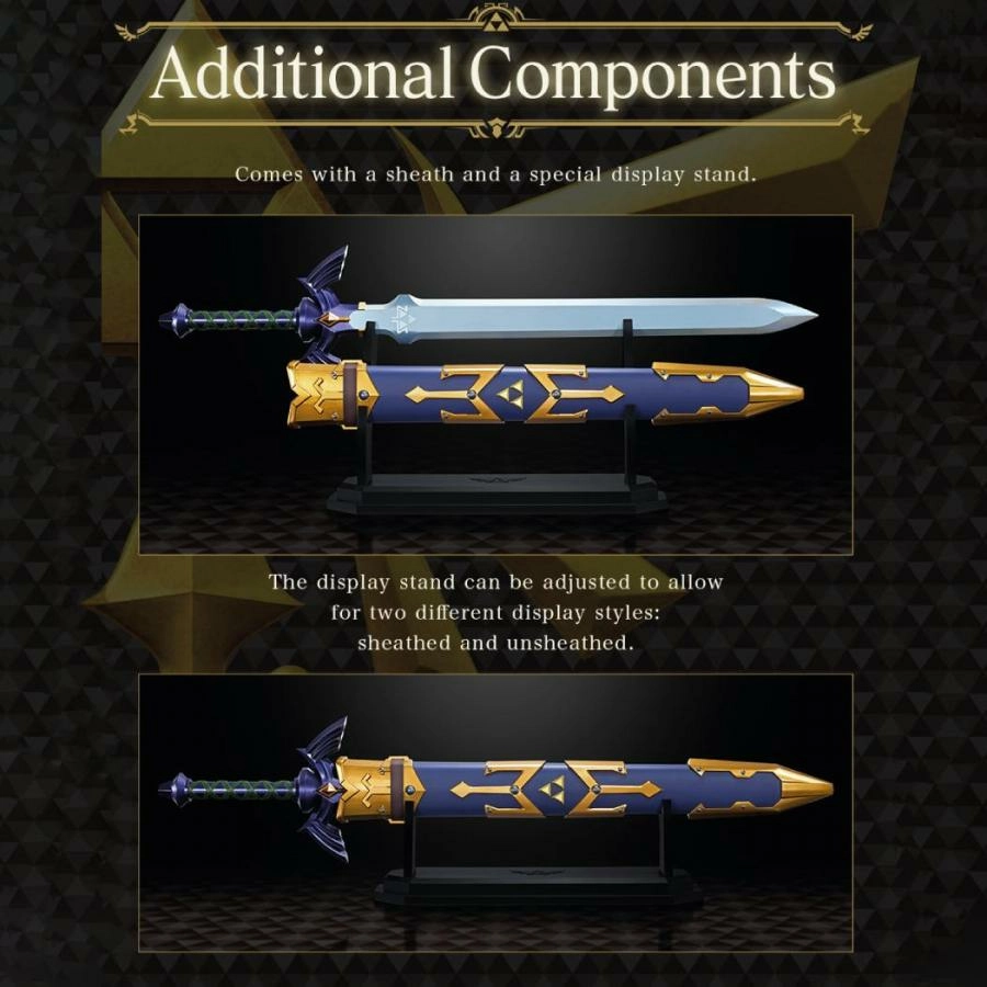 La "Master Sword" de The Legend of Zelda est maintenant disponible en PROPLICA. Avec une longueur totale d'environ 105 cm, elle dispose d'effets sonores et de musiques de la série "Legend of Zelda" . Elle est également dotée d'un gimmick de vibration intégré.