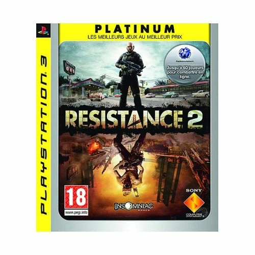 Resistance 2 édition Platinum, jeu de tir à la première personne sur PS3, reprend là où le premier volet s'était arrêté. Le conflit entre les humains et les Chimères se poursuit et s'étend finalement au territoire américain. Nathan Hale doit livrer un combat désespéré contre ses ennemis, mais aussi contre l'infection qui le ronge depuis le début. Outre sa campagne solo, le jeu propose un mode coopératif capable d'accueillir 8 joueurs en même temps. Et sur internet, c'est à 60 qu'il est possible de combattre.