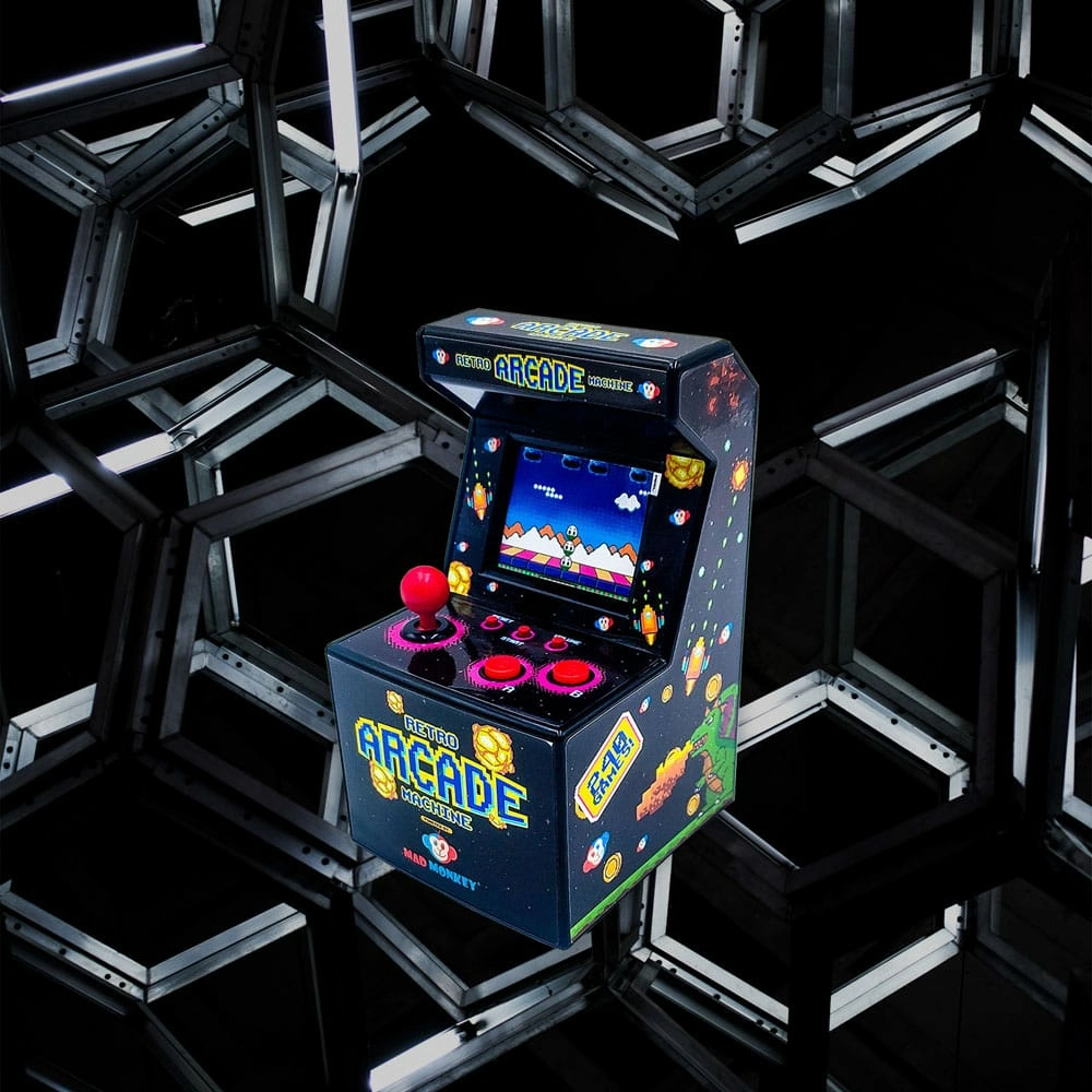 Revivez des heures de jeux vidéo rétro avec cette Mini borne d'arcade contenant 300 jeux. L'écran rétroéclairé permet de jouer dans toutes les conditions d'éclairage.Caractéristiques:- Jeu d'arcade miniature- Contient 240jeux vidéo 8 bits- Dimensions env. 15 x 9 x 9 cm- Nécessite 3 piles AA (non inclus)