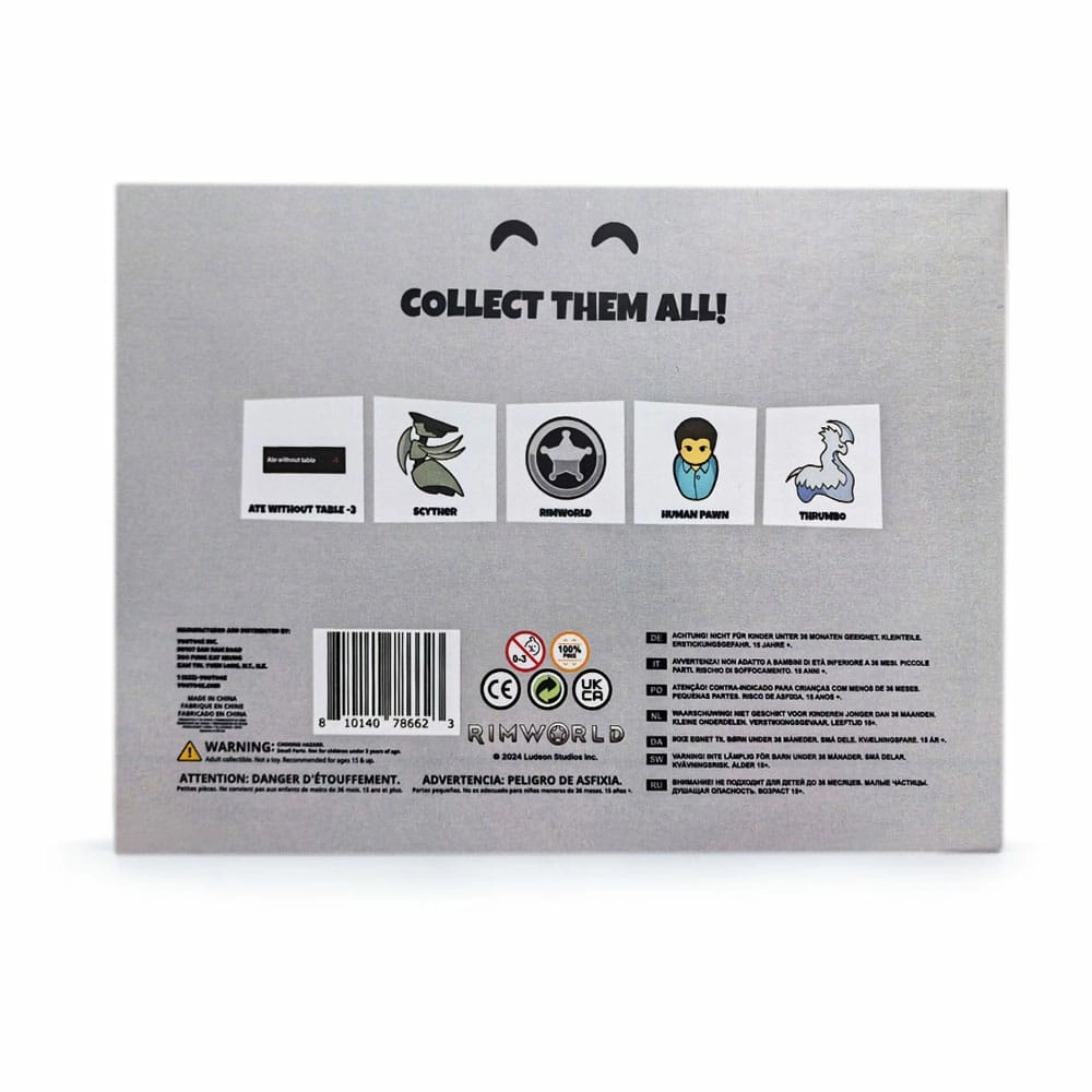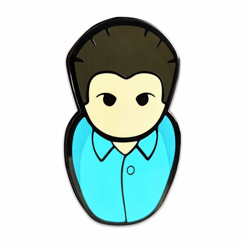 Présentoir de 6 badges en métal émaillé taille env. 5 cm, en emballages boîte-mystère.