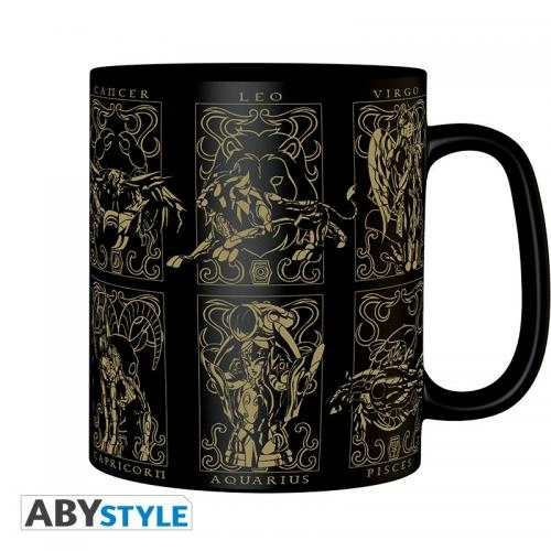 Intensifiez votre cosmos pour éveiller votre septième sens avec ce mug Saint Seiya par ABYstyle représentant les 12 armures des chevaliers d&rsquoor.Caractéristiques :- Grande contenance (460 ml).- Packaging : boîte PVC cristal permettant de protéger le mug tout en assurant une visibilité à 360°.- Convient aux micro-ondes et lave-vaisselle.- Revêtement mat.