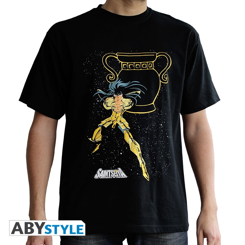 Collectionnez les t-shirts des Chevaliers d’Or Saint Seiya avec ABYstyle. Camus, le Chevalier d’Or du Verseau, est ici représenté avec son signe.