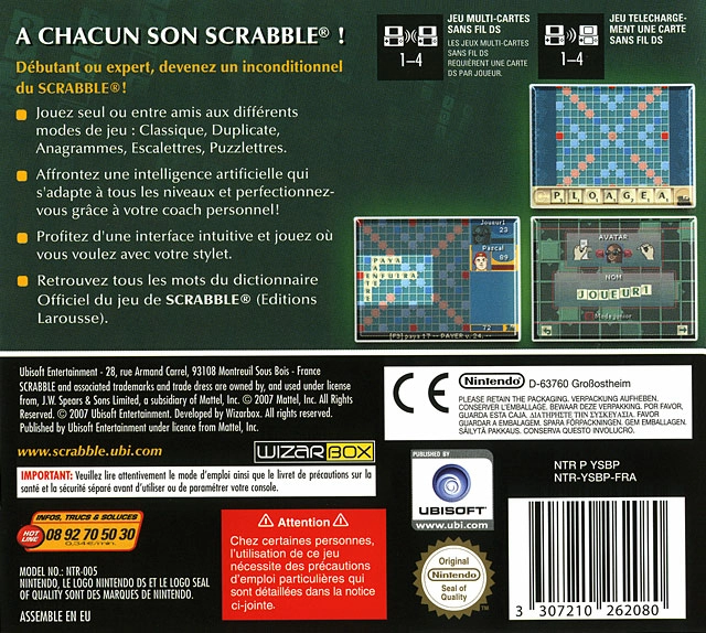Découvrez le célèbre jeu de lettres Scrabble sur DS dans sa version 2007. Pour les débutants comme pour les experts, Scrabble Edition 2007 propose deux modes de jeu : classique pour les occasionnels et duplicate pour les pros.