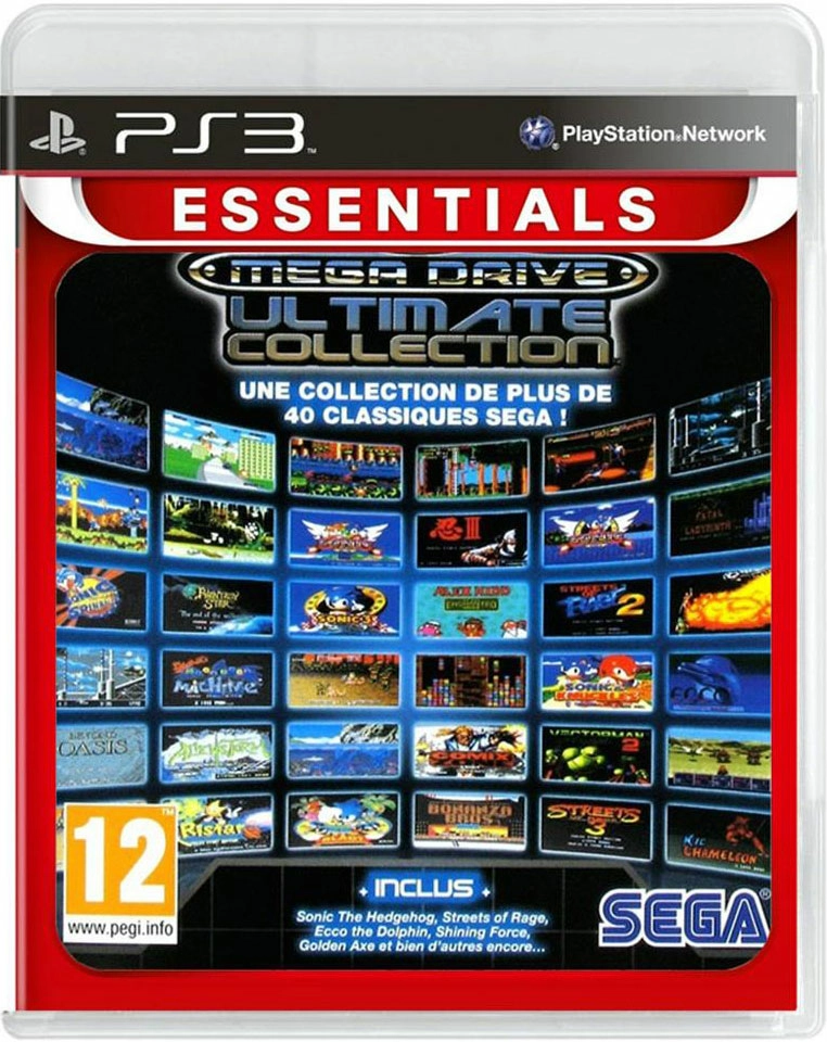 Sega Megadrive Ultimate Collection édition Essentials sur PS3 est une compilation de nombreux grands classiques sortis sur Megadrive, comme Sonic the Hedgehog, Streets of Rage, Ecco the Dolphin, Shining Force, Golden Axe, Phantasy Star, Alex Kidd, Shinobi, Altered Beast et bien d'autres. Le jeu vous donne également la possibilité de débloquer des titres Sega sortis en arcade ou sur Master System.