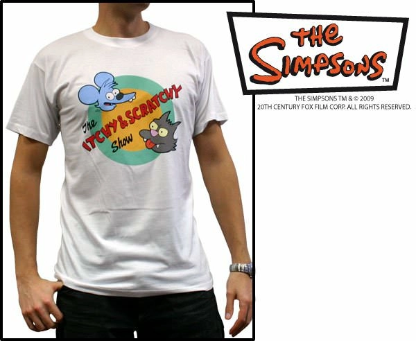 T-Shirt Simpsons Itchy Et Scratchy Blanc Taille XL reprend en visuel le logo du Itchy Et Scratchy Show.