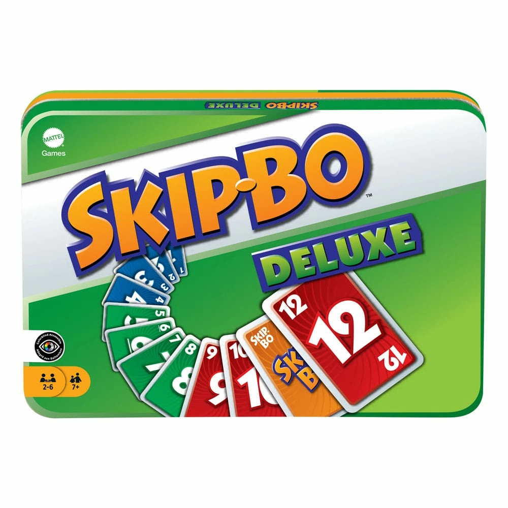 Skip-Bo est le jeu de suites de cartes parfait conçu par les créateurs d'UNO ! ?Les joueurs doivent faire preuve d'habileté et de stratégie pour créer des piles de séries de cartes, de la plus petite à la plus grande (2, 3, 4, etc.) jusqu'à épuisement de leurs cartes. Une fois que tous les joueurs ont reçu leurs cartes, ils peuvent puiser dans la pile centrale et constituer jusqu'à 4 piles de défausse. Les cartes Skip-Bo Joker permettent de débloquer des situations et peuvent remplacer n'importe quel nombre. Utilise soigneusement ces cartes pour gagner la partie ! Le premier joueur à avoir épuisé toutes ses cartes Skip-Bo l'emporte ! Comprend 162 cartes ainsi que des instructions. À partir de 7 ans.- 2-6 joueurs- 7 ans et plus- Guide multilingue