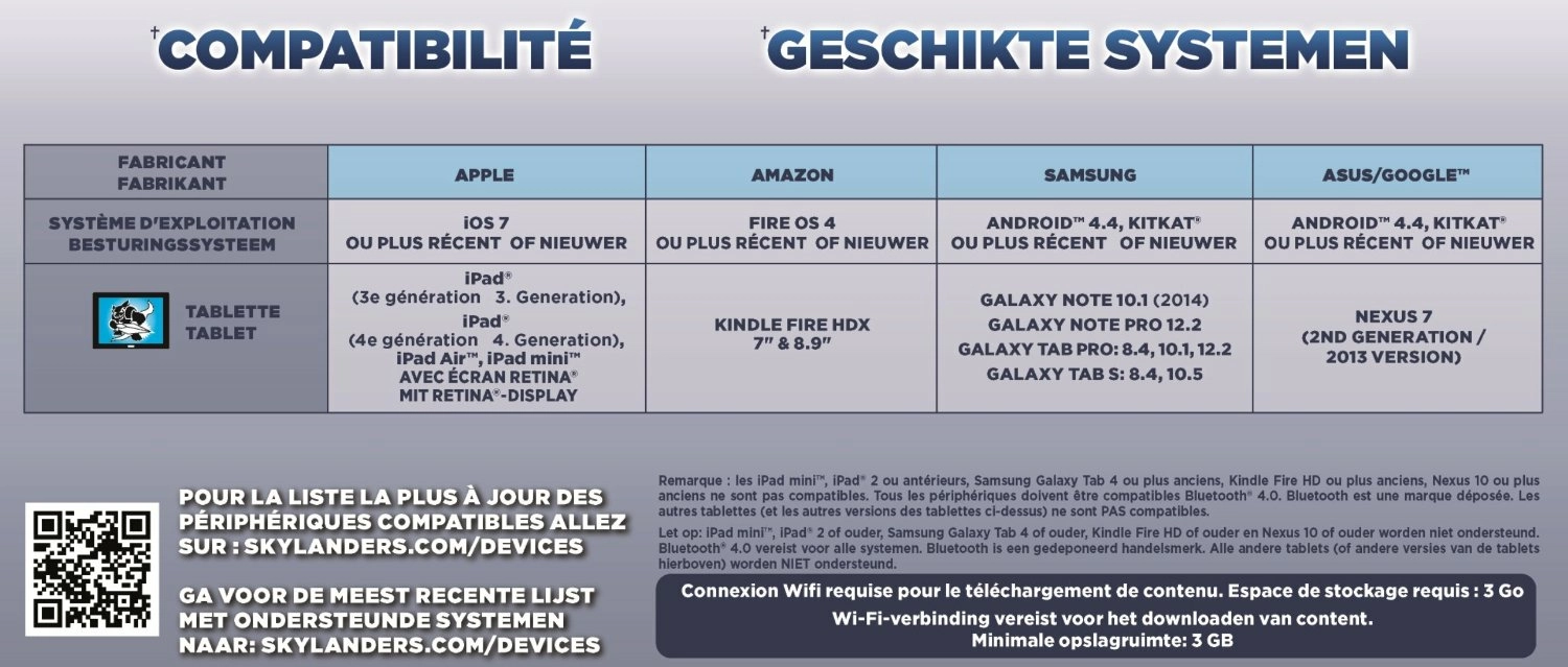 - Voir photo du tableau de compatibilité au dos du Starter Pack pour consulter la liste complète.