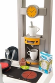 Cuisinière Cherry au design ultra moderne, complète avec machine à expresso intégrée, réfrigérateur, four, 25 accessoires inclus dont les plats, le poisson et la viande sont crus mais il suffit de les faire sauter et de tourner dans la poêle et voilà seront cuits, verser la pâte dans une casserole couverte et même la plaque de cuisson reproduit les sons d'une vraie cuisine, montée mesure 67 x 33,5 x 96,5 fabriquée en France et adaptée aux enfants À partir de 3 ans.