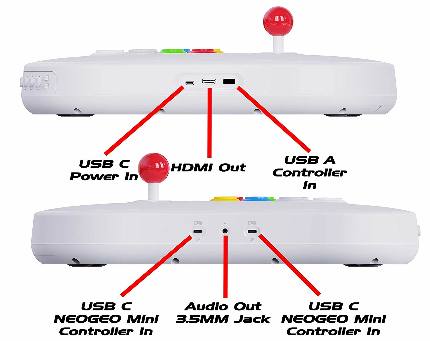 - L’arcade stick pro possède des ports manettes pour y brancher des manettes neo geo mini ou un autre arcade stick pro pour jouer à plusieurs