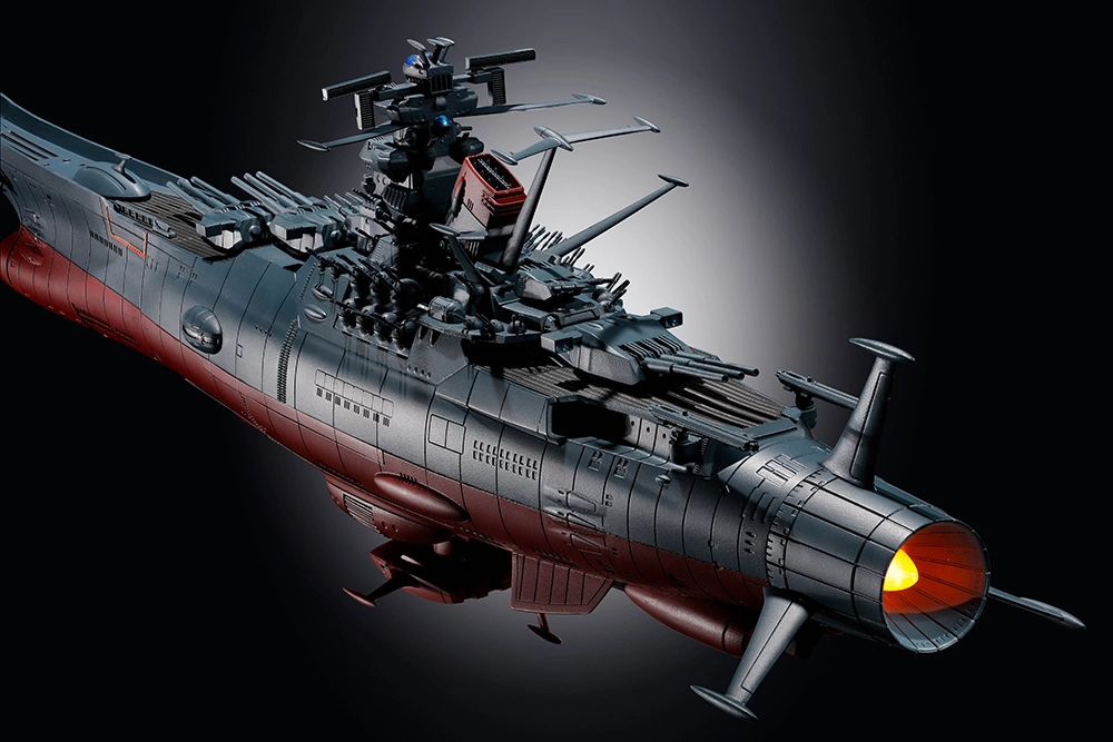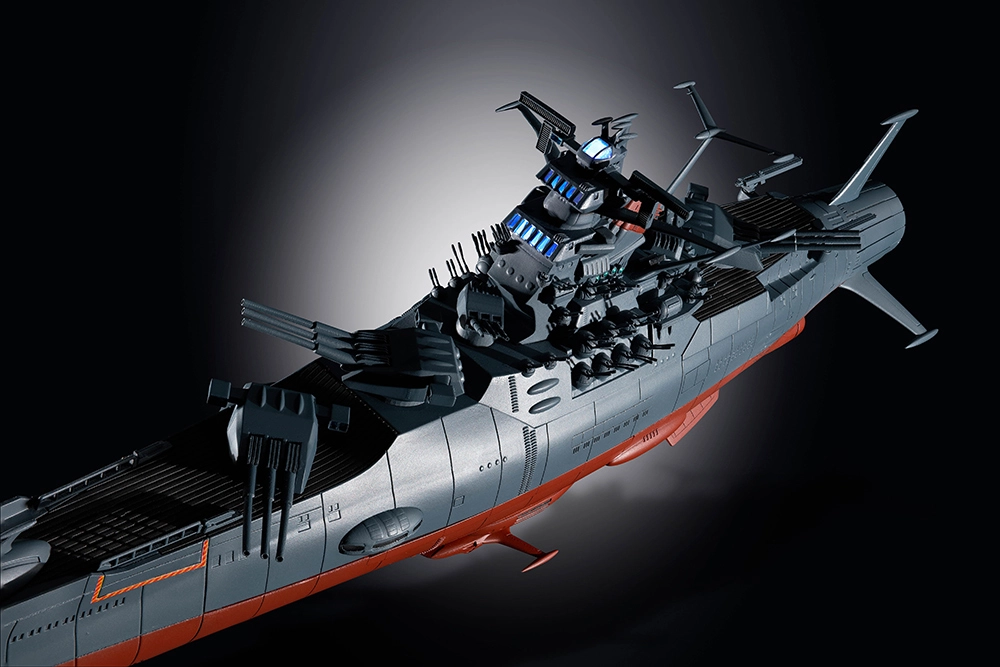 Véhicule en PVC/métal avec fonctions électroniques, longeur env. 42 cm. Modèle de la collection Soul of Chogokin, fabriqué par Tamashii Nations.