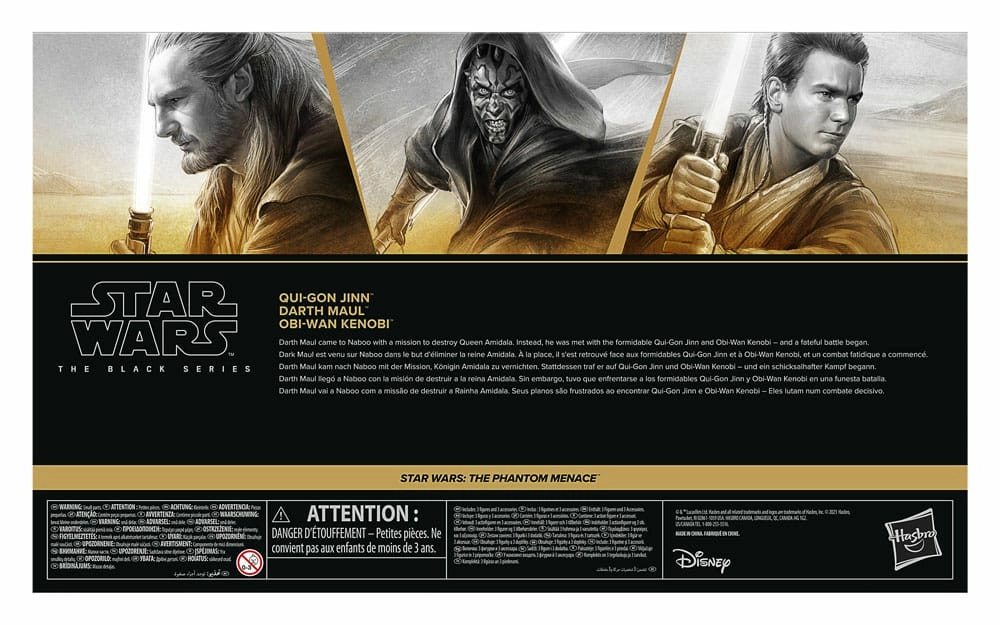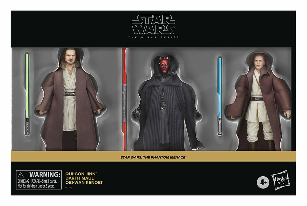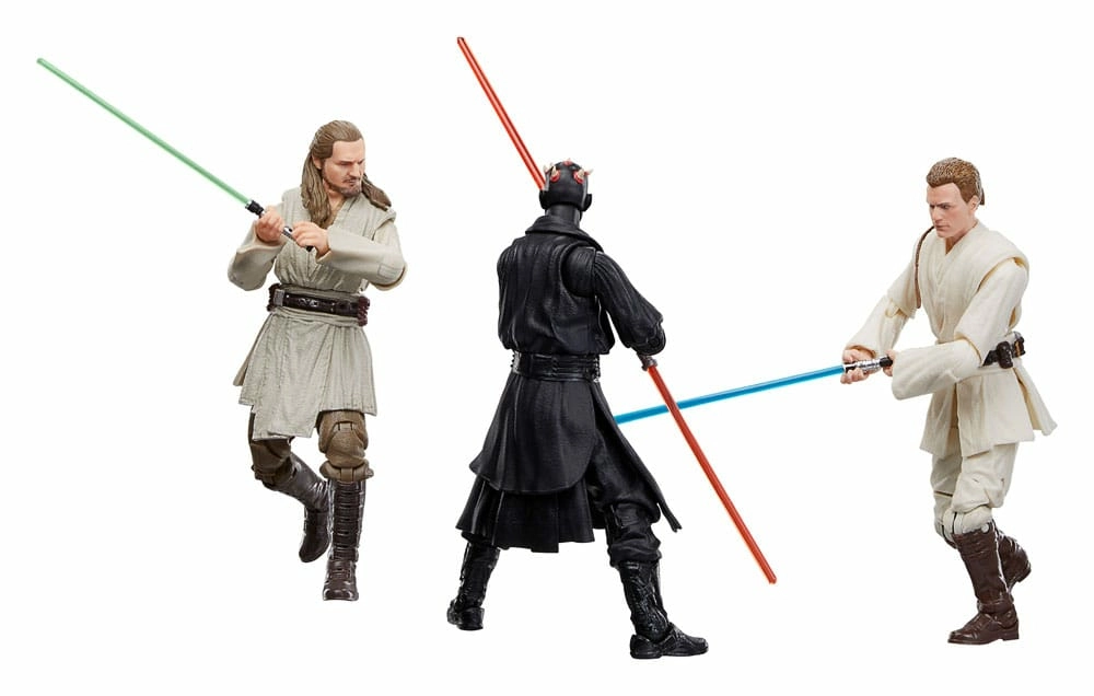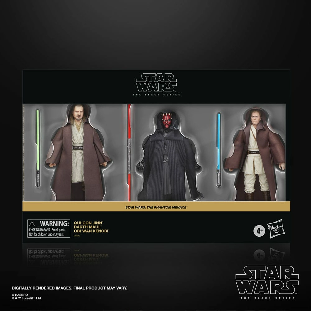 Star wars episode i black series pack 3 figurines qui-gon jinn, darth maul, obi-wan kenobi 15 cm