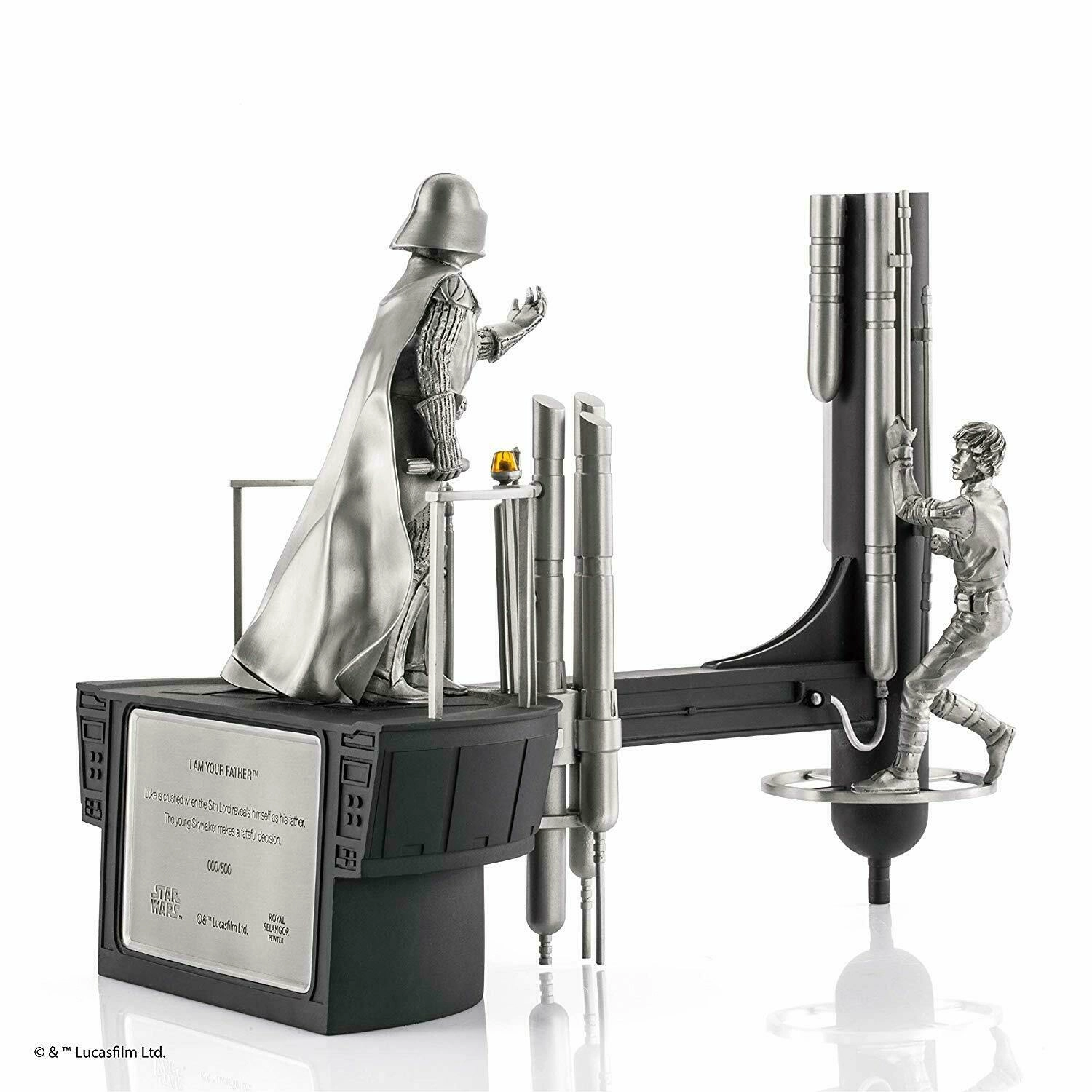 en étain massif et représente la scène culte de l'Episode 5, L'Empire contre-attaque, ou Luke Skywalker apprend que Dark Vador est... son père !Edition limitée à 500 exemplaires à travers le monde.