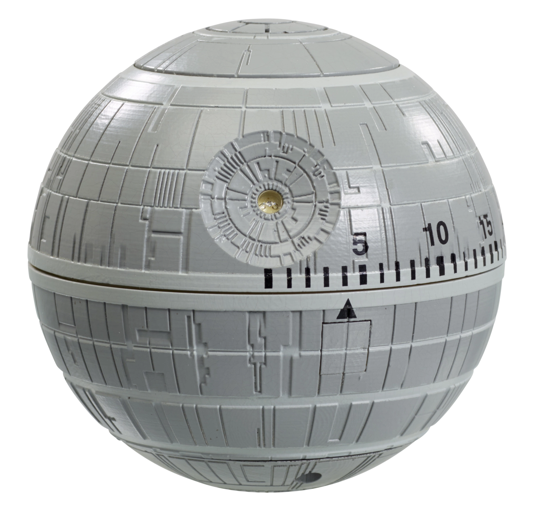 Compte à rebours pour la destruction d’Alderaan, ou pour le début du repas Avec ce minuteur en forme d’étoile de la mort, vous êtes toujours à l’heure ! Réglez l’étoile de la mort afin de détruire savoir le temps dont vous avez besoin pour terminer vos plats. Capable d’accueillir 1 200 000 personnes et 26 000 appareils de soutien de toutes les catégories, elle est armée en surface de plus de 10 000 Batteries de lasers, et pourvue d’un superlaser destructeur de planètes.