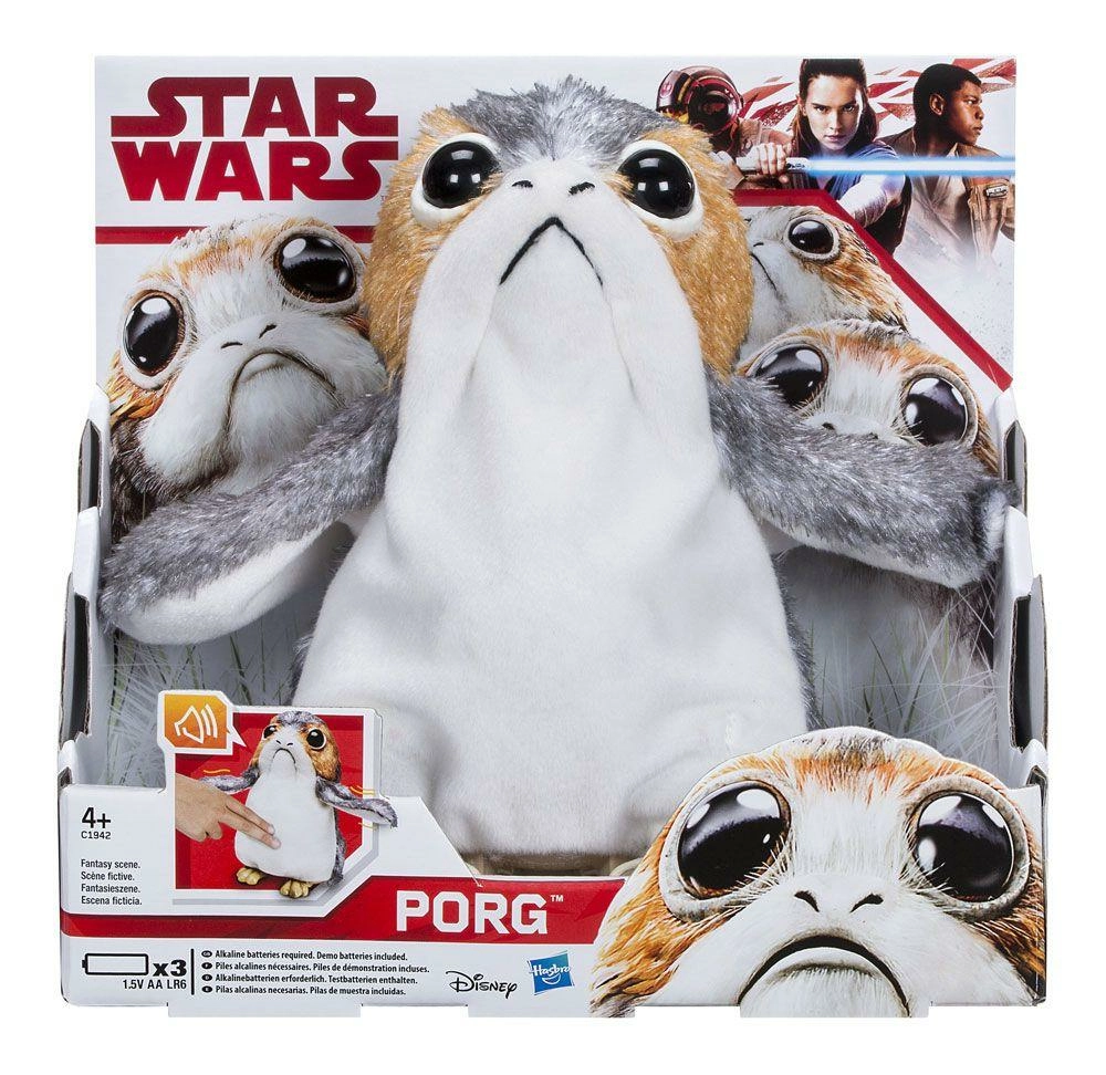 Découvre la peluche Porg issue du film Star Wars ! Cette peluche toute mignonne réagit avec des sons et des mouvements en fonction de l'interaction avec la personne qui le manipule ! Il est trop mignon avec ses grands yeux, les enfants vont l'adorer !